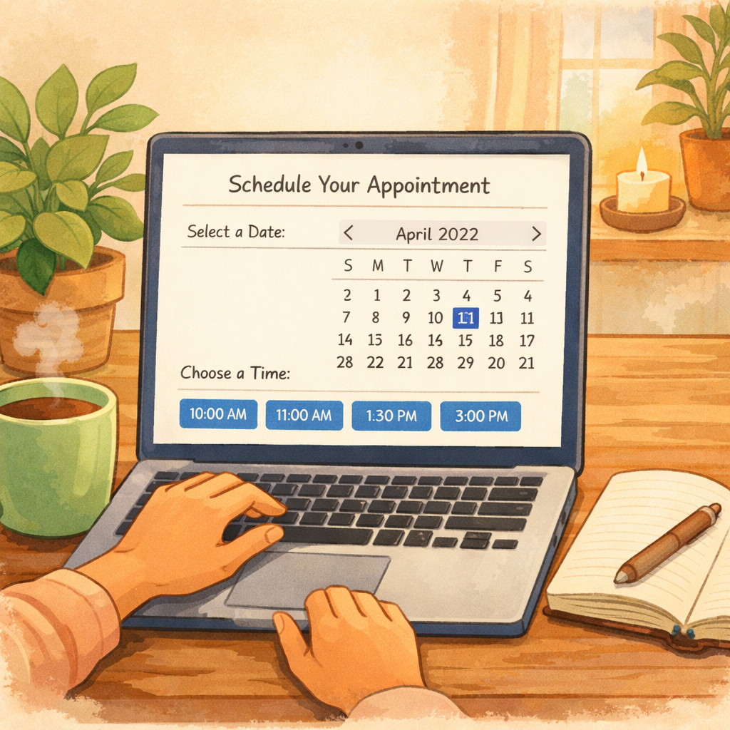 Choose a time using the online scheduler. You’ll receive a confirmation email with clear instructions and a secure meeting link.